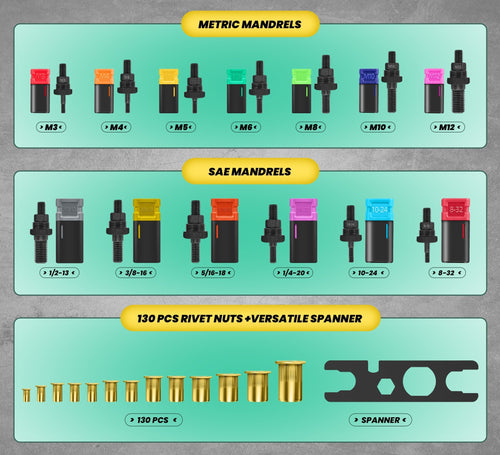 FEATURES: Rivet Nut Tool 【Wide Applications】The riveters tool-set with ergonomic handles maximizes leverage and for easy operation, saves energy. The delicate Shape Heavy Duty Nut rivet...
