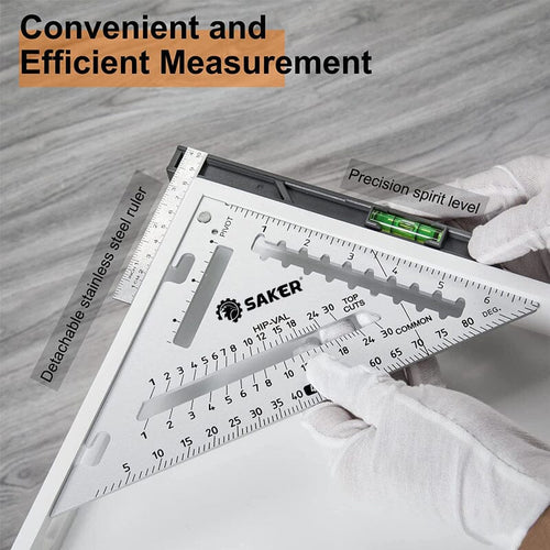 FEATURES: Superior Quality: The SAKER® Rafter Square with Level is crafted from precise heavy-gauge aluminum alloy, ensuring durability, high hardness, and corrosion resistance. The square undergoes...